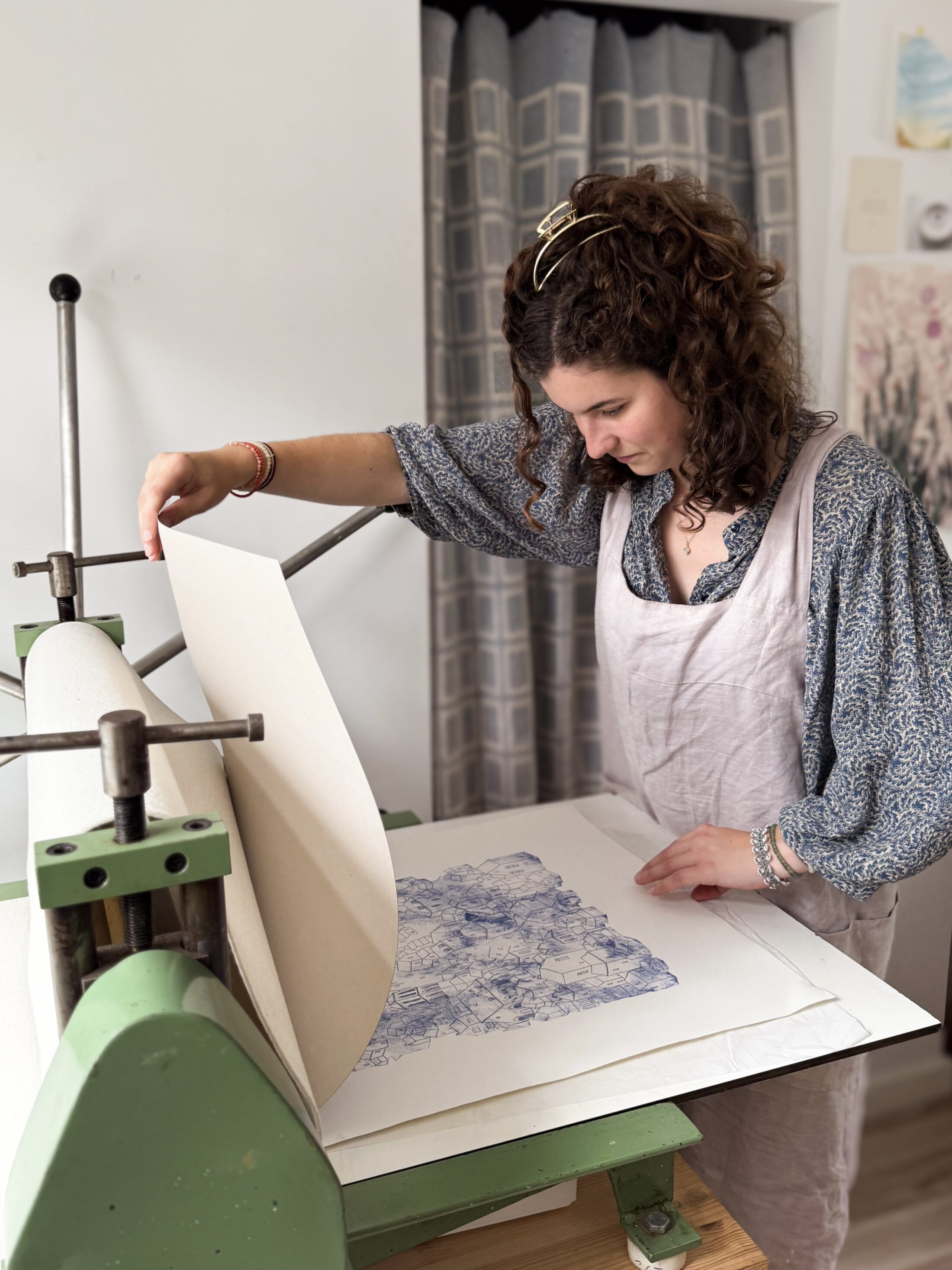 Amely Toevank is beeldmaker. Vanuit een klein atelier in Zutphen werkt ze aan (beeld)verhalen, opdrachten en vrije illustraties. “Ik werk met veel verschillende materialen, maar de basis is vaak een druktechniek zoals monotype, sjabloondruk of een tetra-ets. Het verrassende element in grafiek is iets waar ik niet op uitgekeken raak. Je weet nooit precies wat er onder de drukpers vandaan komt”. Amely’s illustraties variëren van heel verfijnd en gedetailleerd tot experimenteel en vrij. “En het liefst allemaal in één beeld.”